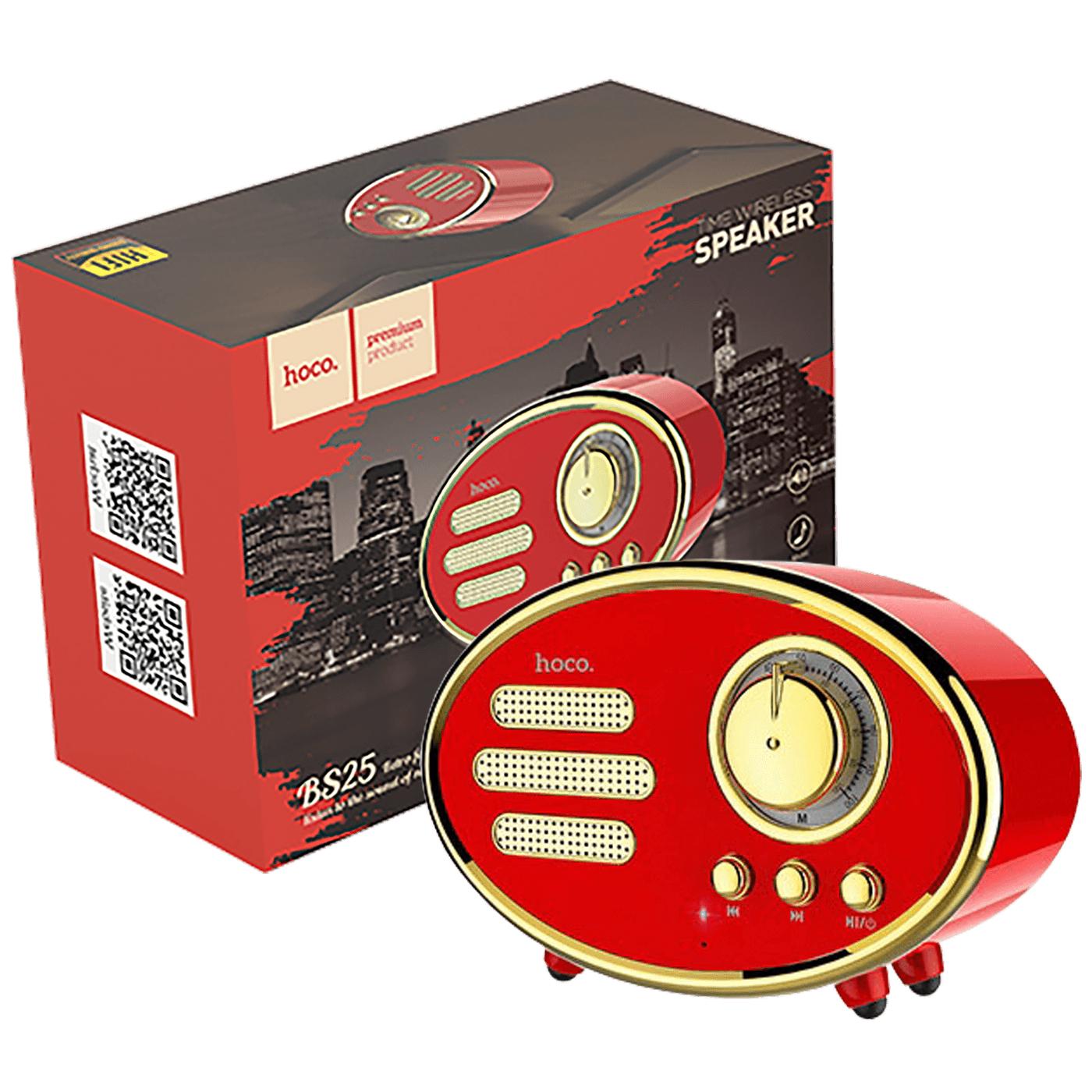 Portable bežični zvučnik, snaga 5 W, zvučnik Ø 52 mm, 3.5mm audio ulaz ( AUX ), utor za micro SD karticu, Bluetooth v4.2. Ugrađena punjiva baterija 1200mAh, Class A, 18650, vrijeme punjenja 2.5 h, reprodukcija do 5 h. Kompatibilan sa svim uređajima koji posjeduju bluetooth konekciju (PC, MAC, SmartPhone, Tablet). Dimenzije: 140 x 65 x 95 mm, Retro dizajn, boja crvena