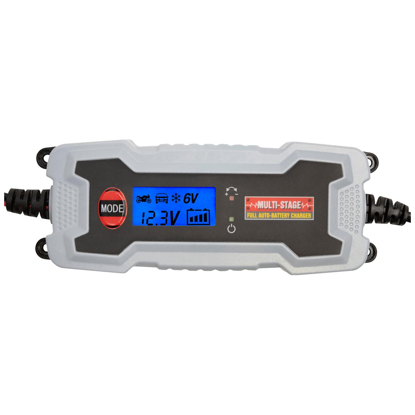 Automatski punjač akumulatora, 6 – 12 V, struja punjenja 1.2 – 120 Ah / 0.8 – 3.8 A, LCD zaslon sa voltmetrom i plavim osvjetljenjem, 5 automatskih programa punjenja. Upotrebljiv kako za klasične olovne akumulatore, akumulatore sa gelom bez održavanja tako i akumulatore sa staklenim vlaknima. Zaštita od obrnutog polariteta, zaštita od kratkog spoja, zaštita od pregrijavanja, zaštita od neispravnog akumulatora, punjenje u više nivoa, regeneracija starih akumulatora, dimenzije 185 x 47 x 70 mm