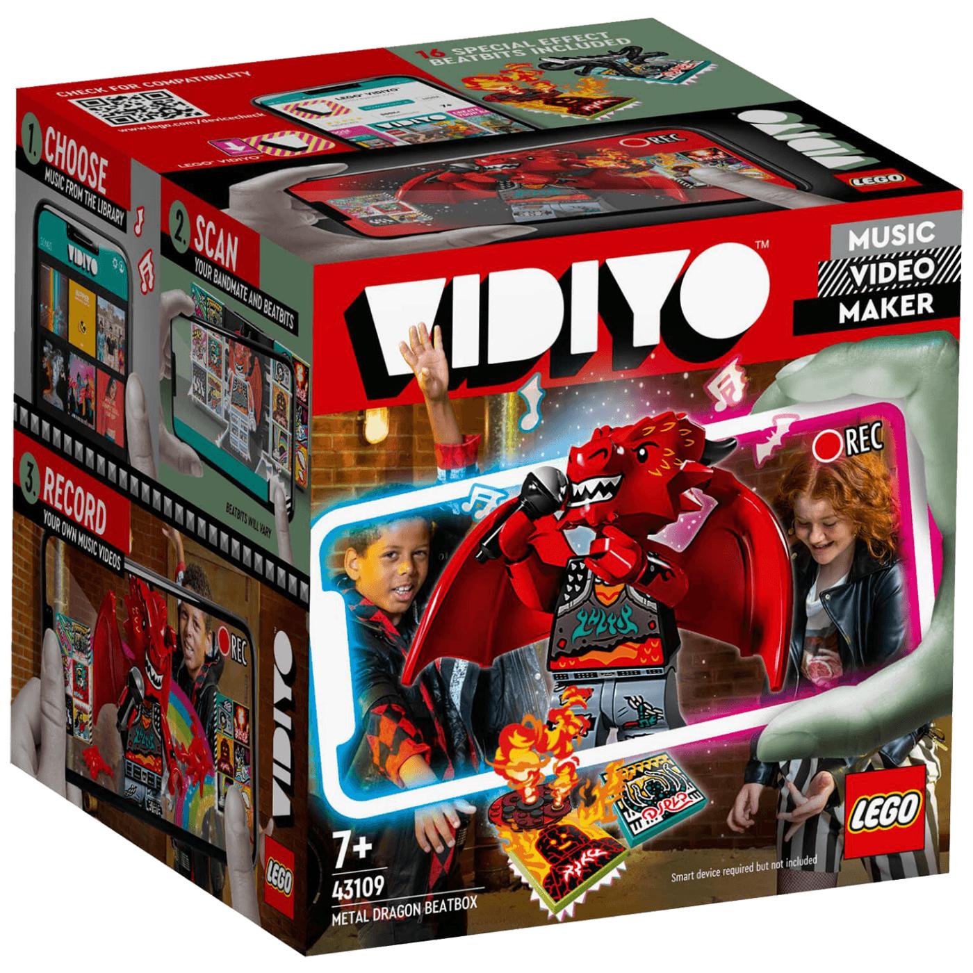 Režiraj i produciraj muzičke spotove pa glumi u njima uz komplet LEGO® VIDIYO™ Metal Zmaj Beatbox (43109). Aplikacijom oživi lik zmaja metalca u odličnim spotovima heavy metala pa ih podijeli na internetu. Dodaj posebne efekte spotu, kao što su zvučni efekti rock-opere i zanimljivih grafika vatre. Vrijeme za turneju? Sjajno! Možeš složiti BeatBox i ponijeti ga sa sobom. • Potaknite djecu da režiraju kreativne muzičke spotove i glume u njima u kompletu LEGO® VIDIYO™ Metal Zmaj Beatbox (43109). Sadrži figuricu pjevača zmaja, 14 nasumce odabranih BeatBita i 2 posebna BeatBita. • Preuzmite besplatnu aplikaciju LEGO® VIDIYO™ da skenirate figuricu i BeatBite za posebne efekte. Djeca će se obradovati kada heavy metalac oživi u njihovu muzičkom spotu. • Skenirajte BeatBite u aplikaciji i otključajte posebne efekte, kao što su zvučni efekt opere i uzbudljivi vatreni elementi, baš kao na pravom koncertu heavy metala. • Zabavno muzičko iskustvo za dječake ili djevojčice od 7 godina i starije koji zaslužuju nagradu. Komplet igračaka ujedno je i sjajan praznični poklon za svu djecu koja vole muzičke igračke, ples i nastupe. • BeatBox je visok više od 8 cm, dug 7 cm, a širok 11 cm. • Djeca mogu složiti BeatBox i ponijeti svoj muzički svijet na turneju, gdje god krenuli. U BeatBoxu ima mjesta za pozornicu od kocaka za skeniranje, 16 BeatBita i mali mikrofon. • Aplikacija LEGO® VIDIYO™ kompatibilna je s odabranim uređajima sa sustavima iOS i Android. Provjerite kompatibilnost na stranici www.LEGO.com/devicecheck. Djeca trebaju tražiti dozvolu roditelja prije nego što se spoje na internet. • U kompletima LEGO® VIDIYO™ djeca dobivaju novo iskustvo društvene igre uz koje dječaci i djevojčice posaju redatelji, producenti i muzičke zvijezde te stvaraju i dijele muzičke spotove. • LEGO® dijelovi ispunjavaju stroge standarde industrije kako bi bili skladni, kompatibilni te se pouzdano spajali svaki put. Tako je još od 1958. • LEGO® dijelove bacamo, grijemo, lomimo, savijamo i analiziramo kako bismo bili sigurni da ispunjavaju visoke globalne standarde sigurnosti.